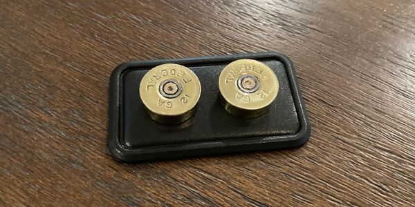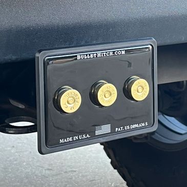 BulletHitch is the perfect gift for shooting-sports enthusiasts, hunters, law enforcement, military, etc. Real, once-fired, 12 gauge shotgun shell case-ends protrude from the face, creating a unique, 3-dimensional, eye-catching contrast of brass finish against a black background. Each case-end is polished and coated to protect against weather and tarnish. The face is approximately 4 x 5.5" and the 2" tube can be positioned to accept a pin horizontally or vertically. The base is made of durable ABS, and comes with a retention clip (locking pin recommended). Proudly hand-made in the USA, and backed by a six month warranty. Available soon…