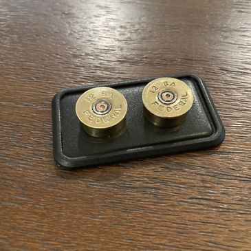 BulletHitch Bling is an all-weather adhesive-backed, framed dome-decal featuring real, once-fired shotgun shell case-ends.