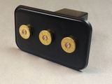 BulletHitch is the perfect gift for shooting-sports enthusiasts, hunters, law enforcement, military, etc. Real, once-fired, 12 gauge shotgun shell case-ends protrude from the face, creating a unique, 3-dimensional, eye-catching contrast of brass finish against a black background. Each case-end is polished and coated to protect against weather and tarnish. The face is approximately 4 x 5.5" and the 2" tube can be positioned to accept a pin horizontally or vertically. The base is made of durable ABS, and comes with a retention clip (locking pin recommended). Proudly hand-made in the USA, and backed by a six month warranty. Available soon…